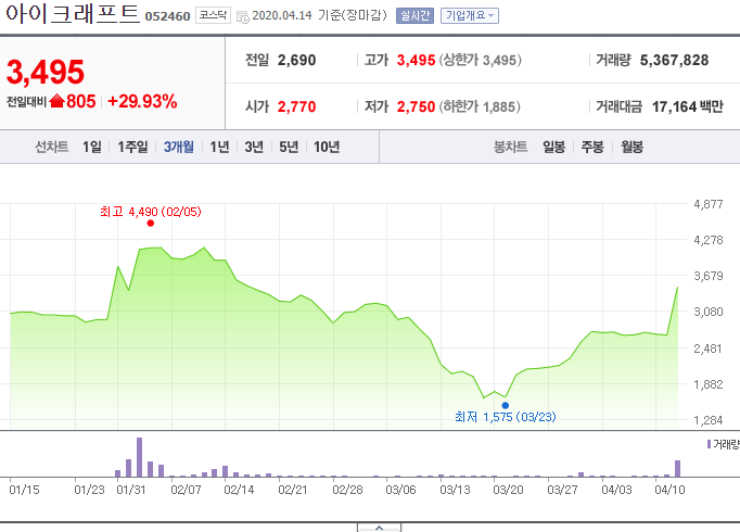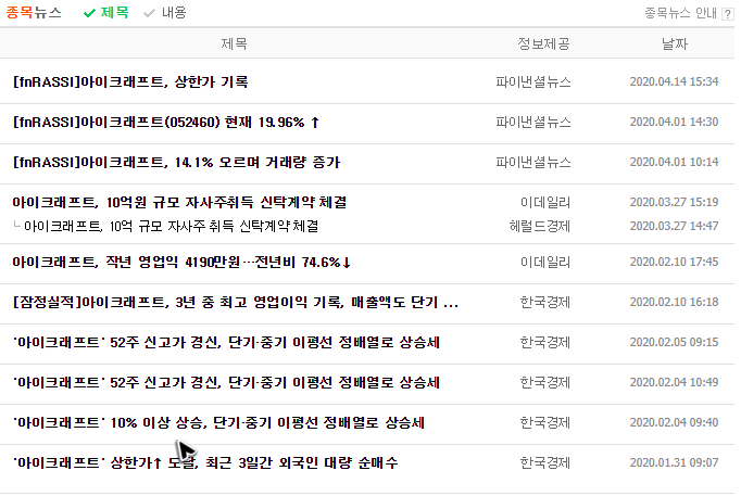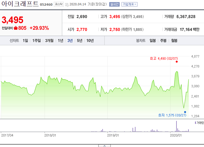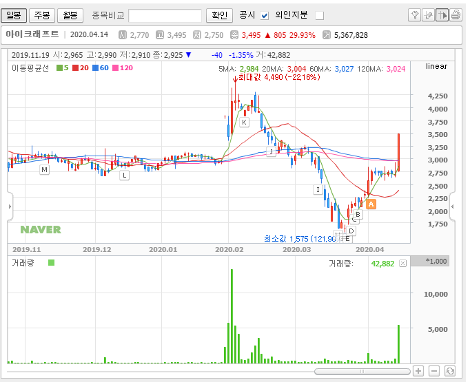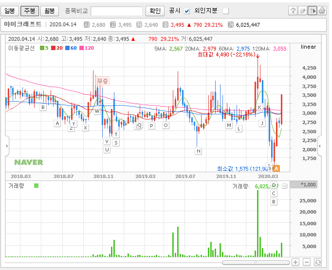 아이크래프트 주가 흐름 분석 : 인터넷 네트워크를 구축하고 시스템을 구축하는 일을 하는 회사죠? 그리고 최근 큰 상승을 보여주면서 많은 분들의 기대감을 자극하는 종목이기도 합니다.