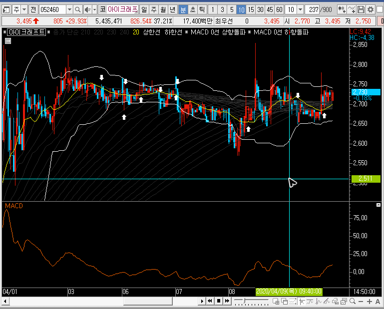 그러다 주봉 단기선인데 각이 완만하고, 분봉에서 충분한 지지력을 보여주지 않는다면, 그대로 아이크래프트 주가를 공략하는 과정을 멈추면 될 것 같습니다.