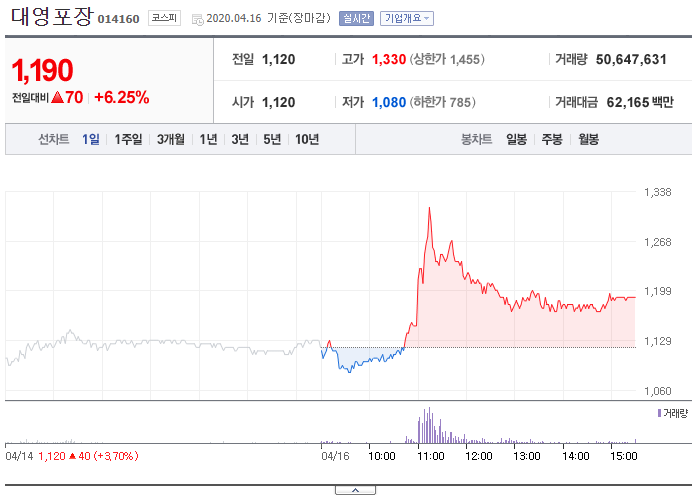 어제 보여준 상승은 테마파크 조성의 영향을 가장 많이 받은 듯한데, 앞으로는 어떻게 움직이게 될까요? 아래 참고해보실 수 있도록 대영포장의 주가와 다른 오를만한 종목에 관한 정보를 함께 엮었으니, 참고해보시면 좋을 것 같습니다!