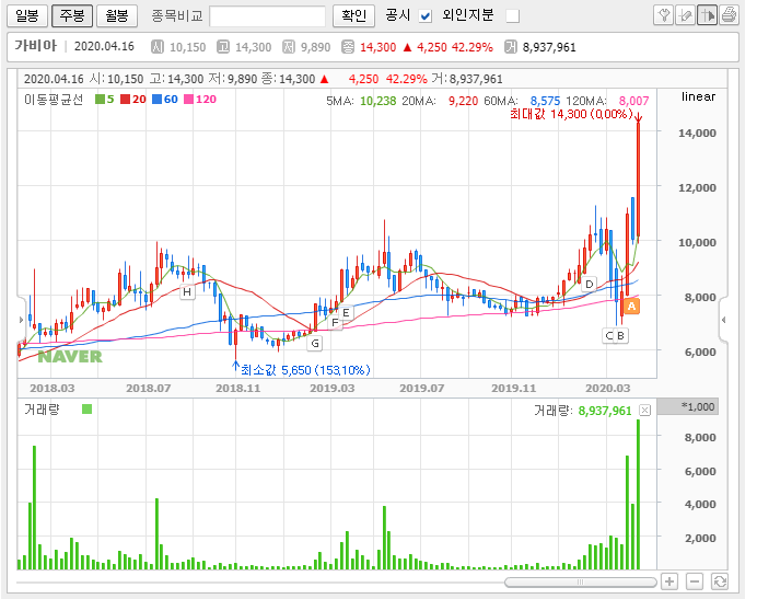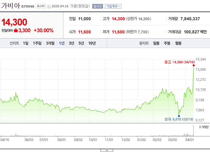 그럼 이제 가비아의 주가에 대해 풀어보도록 하겠습니다. 최근 시장을 뒤흔든 이슈와 함께 비대면 업무처리에 대한 수요가 늘면서 이 종목의 중요성도 강조되고 있지만, 저는 사실 이런 재료가 없어도 좋은 종목이라 생각합니다.