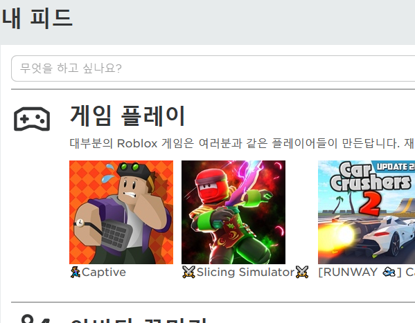 새롭게 등록하거나 기존에 사용하는 정보로 로그인을 했다면, 이제 플레이하고 싶은 종류를 선택해주세요. 처음 로블록스의 바로가기를 만들 땐 그냥 아무 종류나 선택을 해도 괜찮아요.