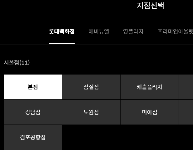 그리고 이렇게 롯데백화점 본점의 휴무일을 확인하는 것과 마찬가지로 다른 곳 역시 동일한 방법으로 정보를 확인할 수 있습니다. 그냥 홈페이지에서 확인하고 싶은 곳을 선택하기만 하면 됩니다.