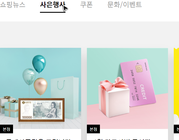 그리고 더 아래쪽으로 이동을 해보면, 이번에는 선택한 곳에서 진행되고 있는 다양한 혜택정보를 열람할 수도 있습니다. 역시나 롯데백화점 본점의 휴무일을 확인하시면서 함께 둘러보시면 좋을 것 같아요.
