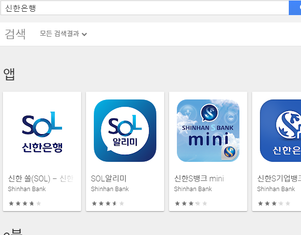 스마트폰에서 신한은행의 공인인증센터가 제공하는 기능들을 쓰고 싶을 땐, 그냥 어플을 설치하면 됩니다. 플레이스토어를 열고 아래 그림과 동일한 앱을 찾아서 준비를 해주세요.