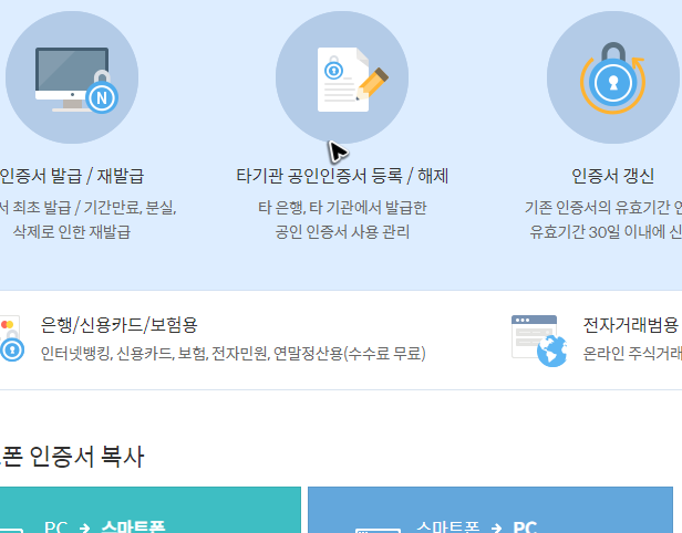 그리고 지금은 컴퓨터 브라우저에서 신한은행의 공인인증센터를 찾아가는 과정을 중점적으로 엮었는데, 스마트기기라면 어플리케이션을 준비해서 동일한 작업을 하는 것도 가능합니다. 굳이 컴퓨터로 넘어와서 작업할 필요는 없어요.