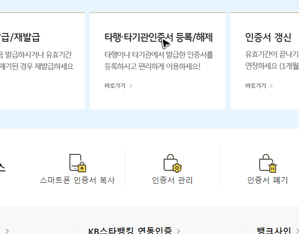 그리고 신한은행의 공인인증센터에서 파일을 만들었다면, 다른 곳에서는 다시 파일을 만들지 않아도 됩니다. 기존의 파일만 연결해서 쓰면 되는데, 연결하는 것 역시 메뉴를 확인하실 수 있을 거예요.