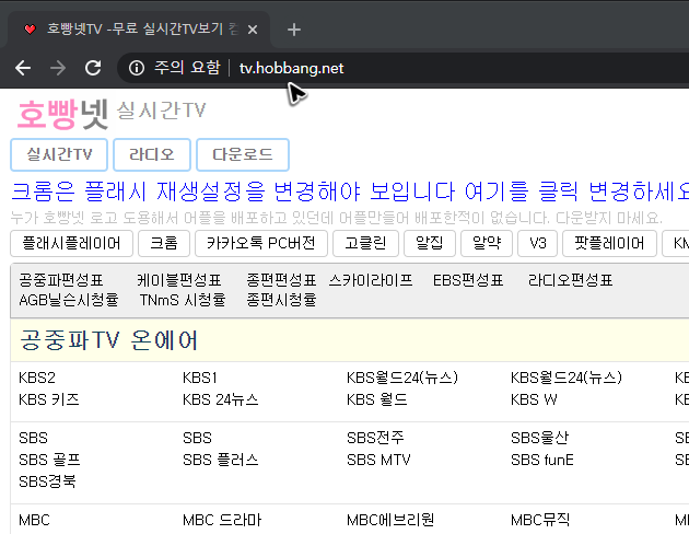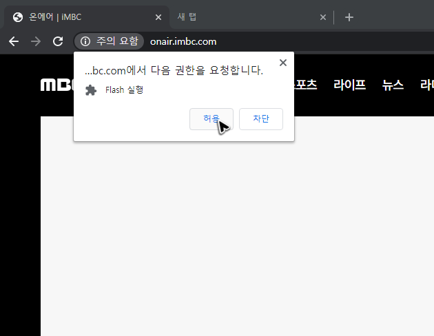 세부 페이지로 이동하면 imbc의 온에어 플레이어가 있는데, 재생하면 됩니다. 혹시 크롬을 쓰고 있어서 저처럼 플래시에 대한 문구가 나온다면, 그 부분을 클릭한 뒤에 사용 설정을 허용해주시면 됩니다.