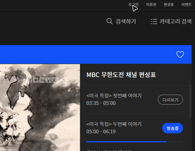 먼저 정리해둔 imbc와 마찬가지로 로그인을 하면 재생 품질이나 기타 제한되는 부분들이 몇 가지 풀리니, 로그인을 한 상태로 플레이어가 있는 곳으로 넘어가는 것이 좋습니다.