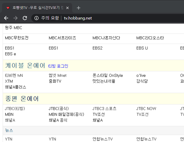 그리고 이 부분은 imbc 온에어와 관련이 크지 않지만 알아두시면 요긴할 듯해서 조금 얘기를 해보겠습니다. 아래 그림에 있는 곳으로 이동하면 다양한 채널이 정리된 것을 볼 수 있어요.
