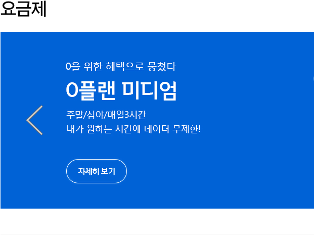 저는 목록에서 첫 번째에 있는 버튼을 눌러봤어요. 그랬더니 다른 홈페이지에서 skt 알뜰폰의 요금제를 확인할 수 있는 메뉴가 바로 보이는군요. 클릭하면 정보 역시 바로 확인할 수 있습니다.
