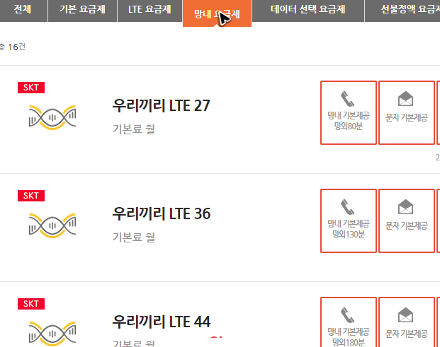 다른 홈페이지는 어떨지 모르겠지만, 적어도 여기에서는 세부 카테고리도 잘 정리되어 있어서 비교적 쉽게 skt 알뜰폰의 요금제를 둘러볼 수 있군요.