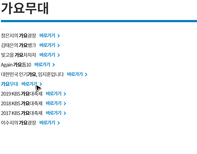 뭔가 서두에서 거창하게 얘기를 한 것 같은데, 공식적으로 지원되는 서비스이다 보니, 그냥 채널 홈페이지만 찾아가면 됩니다. 고로 우리는 가요무대의 다시보기를 kbs1에서 할 수 있어요. 주소는 [kbs.co.kr]입니다.
