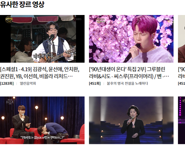 플레이어 아래쪽에는 가요무대의 다시보기를 하는 것과 직접적으로 관련이 있는 것은 아니지만, 다른 프로그램에 대한 정보들을 확인할 수 있습니다. 이 부분도 한 번쯤 둘러보시면 좋을 것 같아요.