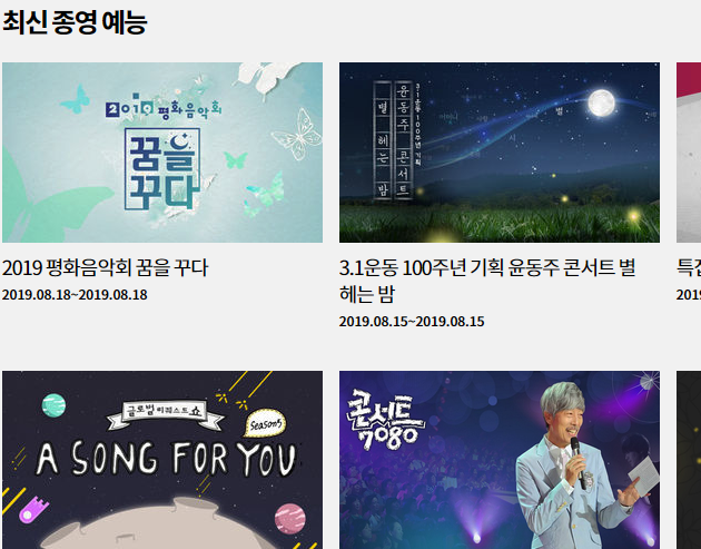 이미 알고 계시겠지만, 지금 이렇게 가요무대를 인터넷으로 보는 것처럼 다른 프로그램 역시 같은 방식으로 시청하면 됩니다. 다른 채널 역시 가능해요. 그냥 공식 홈페이지를 찾아간 뒤에 플레이어가 있는 곳으로 이동하기만 하면 됩니다.
