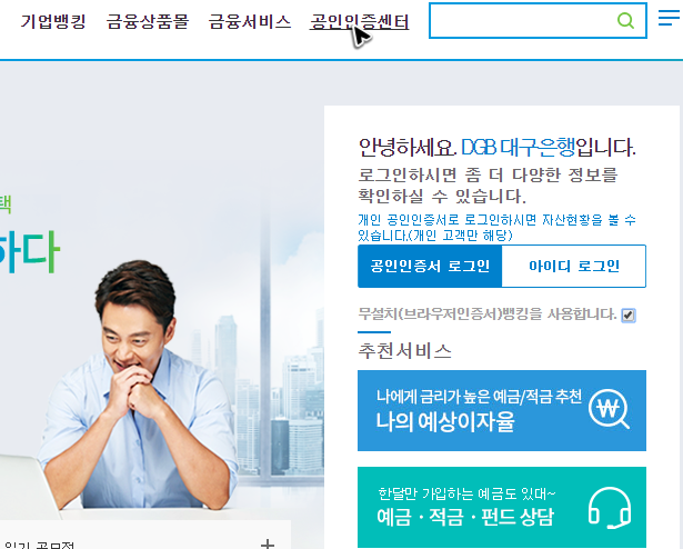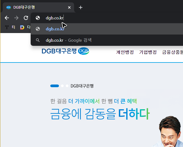 제일 먼저 해야 할 일은 공식 관리 페이지를 찾아가는 것인데, 꼭꼭 숨겨진 페이지가 아니기 때문에 검색하면 바로 찾을 수 있지만, 그래도 [dgb.co.kr]를 주소창에 입력해서 대구은행의 공인인증서를 재발급하거나 갱신하는 것이 더 빠를 거예요.