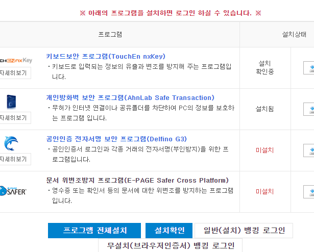 보안모듈이라는 것이 안전한 대구은행 공인인증서의 재발급을 위해서는 필요한 부분이라 하지만, 개인적으로는 정말 더 안전한 것이 맞는지 모르겠고, 그냥 컴퓨터가 느려져서 결국 지워야 할 몹쓸 도구로만 보이는군요. 개인적인 생각입니다.