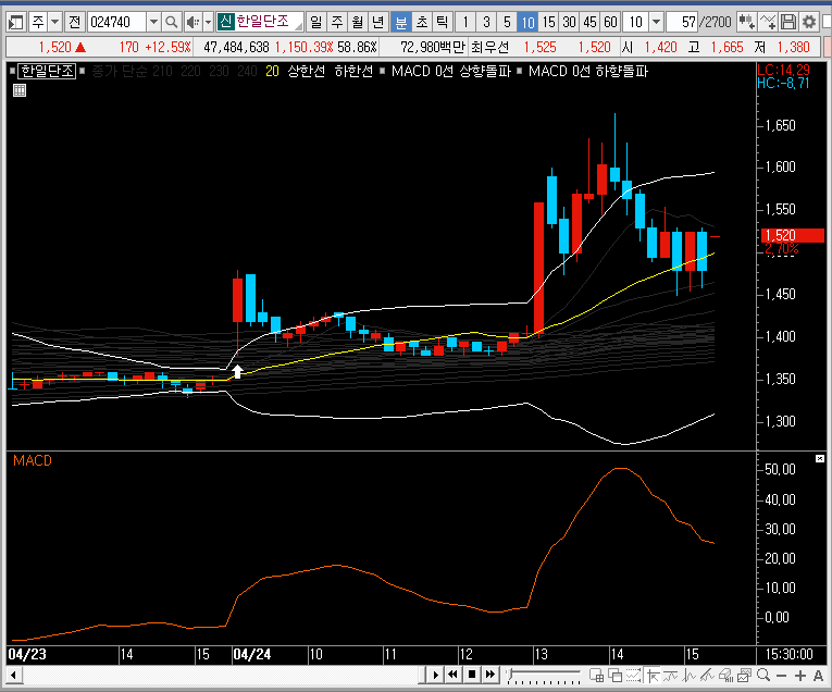고로 뛰어난 식견으로 한일단조의 주가를 미리 공략하신 분들이라면 이제 정리하는 것을 고려해볼 수 있는 자리가 되었지만, 아직 포지션이 없는 상태라면 새롭게 공략하는 것에는 소극적인 자세가 필요할 것으로 보입니다.