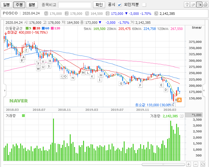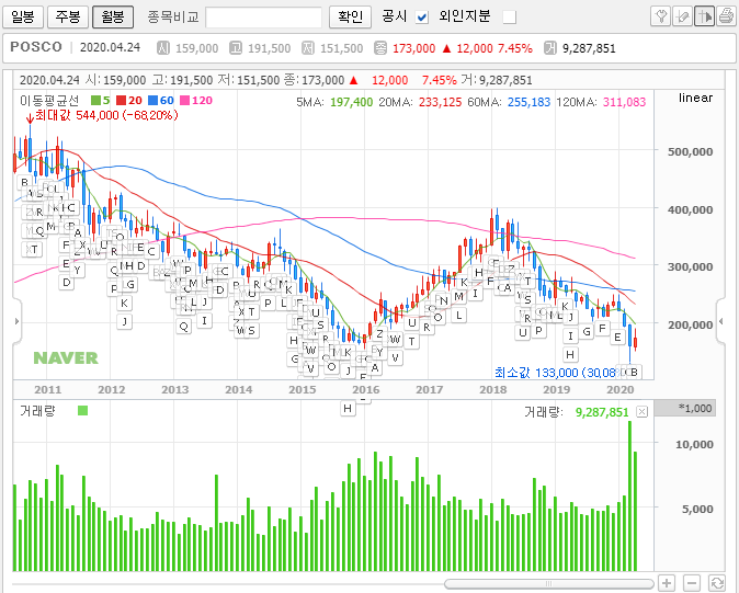 그래서 한 편으로는 떨어지면 떨어질수록 좋다고 보게 되는 것 같습니다. 그래서인지 시장 타격까지 더해진 요즘 이 종목에 관심을 두는 분들이 늘었는데, 앞으로 posco의 주가는 오를 수 있을까요? 이런저런 얘기들을 아래 풀었으니 확인해보시면 좋을 것 같습니다.