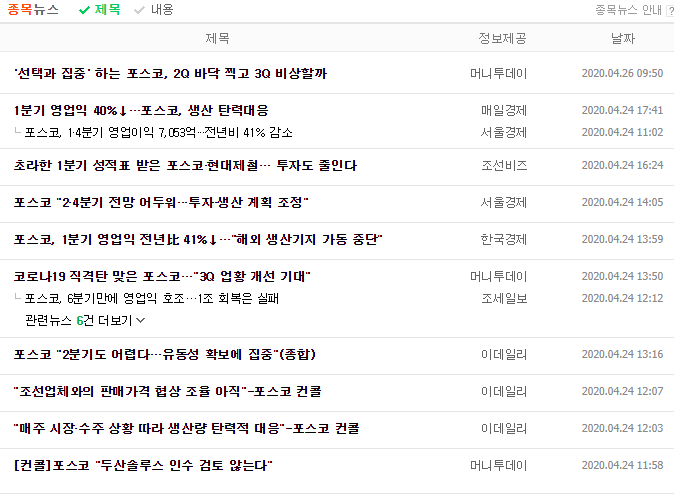 2분기가 가장 큰 영향을 받을 것으로 보고 있지만, 그것도 당장에 코끼리19를 물리칠 수 있는 상황일 때의 얘기입니다. 고로 코끼리19의 영향을 받아서 하락하는 posco의 주가가 빠르게 역전할 것이라는 기대를 하기는 어려울 듯합니다.