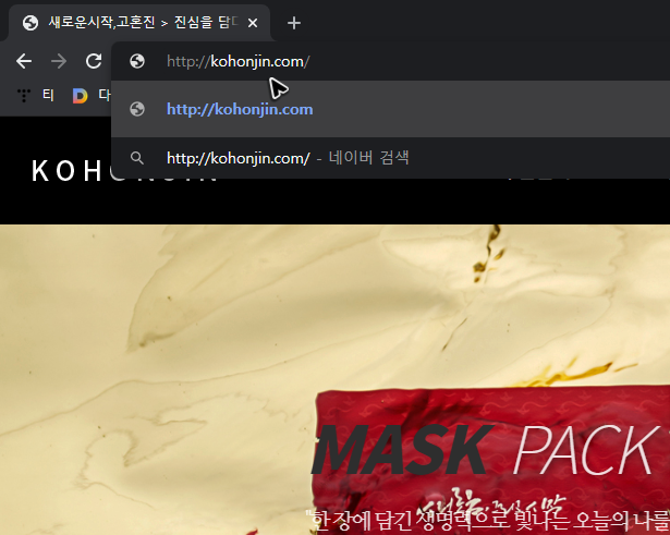 그러니 공식 홈페이지를 통해서 고혼진 크림의 가격을 다시 한 번 확인해주세요. 공식 홈페이지는 딱히 숨은 상태가 아니기 때문에 포털에서 검색하면 찾을 수 있지만 [kohonjin.com]을 브라우저 주소창에 적고 엔터를 누르는 것이 더 간단해요.
