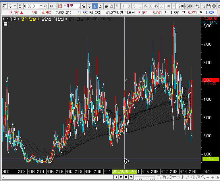 물론 이 종목이 더 오를 수도 있습니다. 다만, 저라면 일봉이나 주봉차트에서 단기선 눌림만 보고 이 종목을 공략하기 보다는 월봉의 흐름을 체크할 것 같습니다.