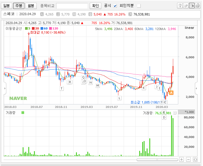 그럼 스페코의 주식에 대해서 얘기를 이어가보도록 하겠습니다. 잘 아시겠지만, 이번에 나온 상승파는 실적과 관련된 소식이 아니라 테마와 관련된 소식입니다.