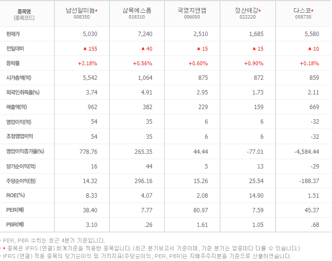 아마 남선알미늄의 주가를 공략하기 위해 필요한 투자판단용 자료가 필요하신 분들이 많으실 것 같은데, 이런 신뢰도가 높은 자료들은 저처럼 잘 모르는 사람보다는 전문적인 곳에서 알아보시는 것이 좋은 선택이 아닐까 합니다.