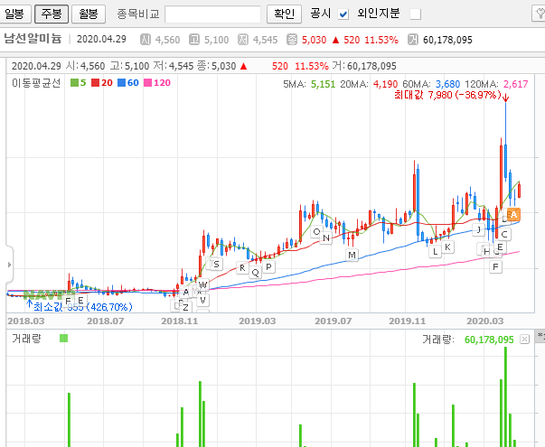 남선알미늄 주가 흐름 예상 : 대표적인 이냑연테마로 꼽히는 종목이죠? 그리고 최근 강한 상승파를 보여주면서 많은 분들의 시선을 사로잡고 있는 종목이기도 합니다.