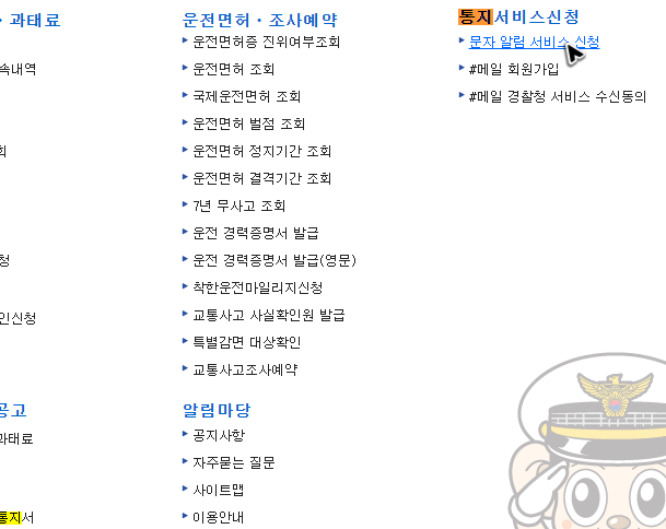 외에도 신호위반 실시간 조회를 하기 위해서 찾아간 사이트를 보면 의외로 다양한 메뉴들이 정리되어 있습니다. 이런 메뉴들을 둘러보시고 알아두시면 나중에 혹시 어떤 정보를 조회할 일이 있을 때 빠르게 조회를 해보실 수 있을 것 같아요.