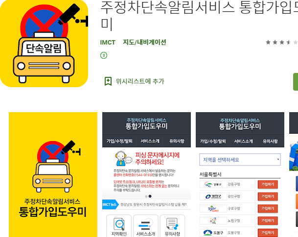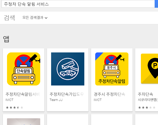 검색해보면 몇 가지 종류가 나오는데, 그냥 첫 번째 어플을 받아서 조회하는데 사용하시면 됩니다. 이 어플을 쓰면 주차 위반을 했을 경우 첫 번째 단속에서 알림이 오기 때문에 두 번째 단속이 되기 전에 자동차 위치를 옮길 수 있어요. 고로 벌금낼 일을 피할 수 있습니다.