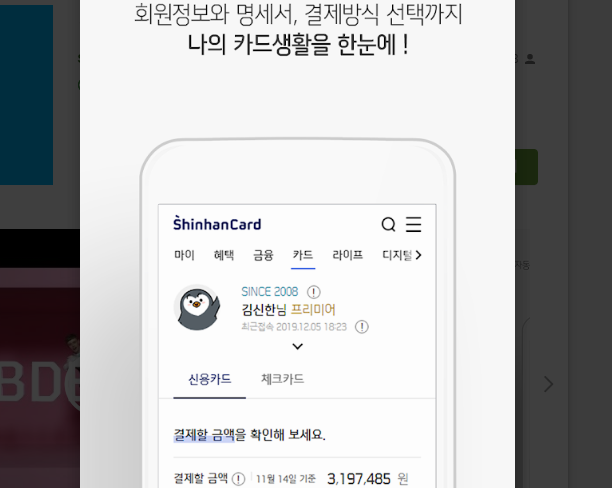 신한카드 홈페이지를 대신하는 어플