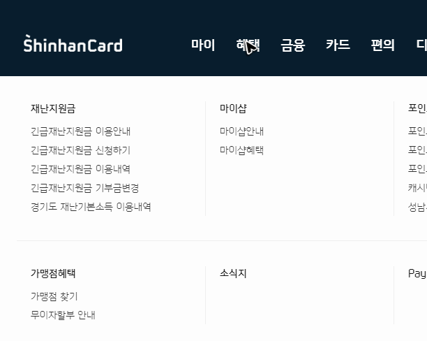 신한카드 홈페이지 기본