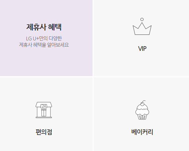 여기에서 더 많은 혜택을 챙기거나 부담을 낮추고 싶다면, 상단 카테고리 메뉴에서 혜택보기라 적힌 메뉴를 눌러주세요. 그럼 유플러스의 요금제를 등록했을 때 내가 챙길 수 있을 것 같은 혜택 종류를 세세하게 알아볼 수 있습니다. 그리고 제휴를 통한 추가적인 부담 낮추기도 가능하니 유플러스를 등록하기 위해서 알아보실 땐 이 부분도 꼭 체크하시길 바랍니다.