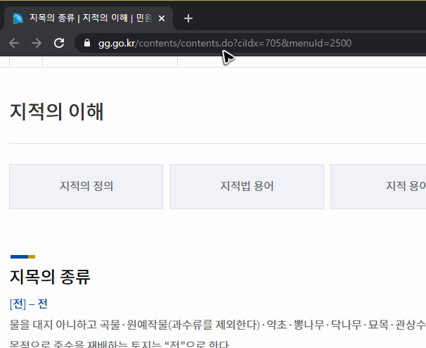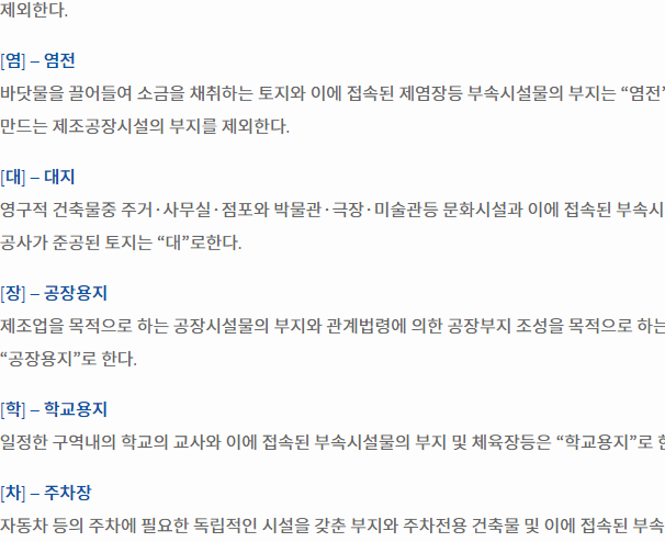 지목은 총 28가지로 구분되어 있는데, 혹시 지목에 대해서 조금 더 자세하게 알아보고 싶으시다면, 하단 그림에 있는 주소로 이동해보시기 바랍니다. 28가지로 구분되는 지목에 대한 의미들을 모두 열람해보실 수 있을 것입니다.