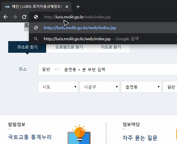 해당 정보는 대단히 비밀스러운 정보가 아닙니다. 그냥 토지 이용 규제 정보 시스템을 찾아가면 간단하게 필요한 정보들을 열람할 수 있는데, 검색해서 찾아갈 수도 있고, 주소창에 [luris.molit.go.kr]를 입력해서 토지이용계획확인원을 무료로 열람하는 것도 가능하니, 편한 방식으로 사이트를 찾아가서 땅을 찾아보시면 될 것 같습니다.