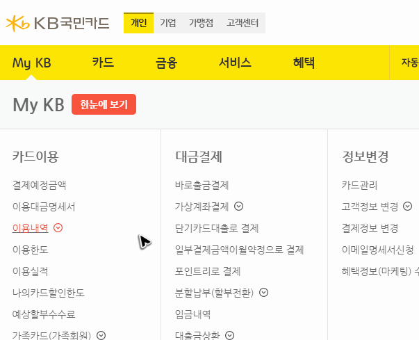 어떤 정보를 조회하는 메뉴를 선택했다면, 로그인을 한 뒤에 나오는 홈페이지의 내용들을 살펴보면 됩니다. 그리고 사용하는 국민카드의 정보를 변경하거나, 추가 등록을 하는 등의 메뉴를 선택했다면, 홈페이지에서 요구하는 정보들을 채워주기만 하면 되는데, 이 부분 역시나 특별히 어려운 과정이 없을 거예요.