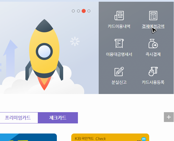 홈페이지를 찾아간 뒤에는 상단의 카테고리 메뉴에서 국민카드의 사용내역 조회나 관리, 금융상품 정보 등, 필요한 메뉴를 찾아서 클릭을 해주시면 됩니다. 보통 국민카드 홈페이지의 바로가기를 하는 이유가 그리 다양하지 않기 때문에 페이지에서는 자주 찾는 기능들을 오른쪽에 따로 정리해두기도 했어요. 이 부분을 활용하셔서 필요한 메뉴를 찾으셔도 될 것 같습니다.