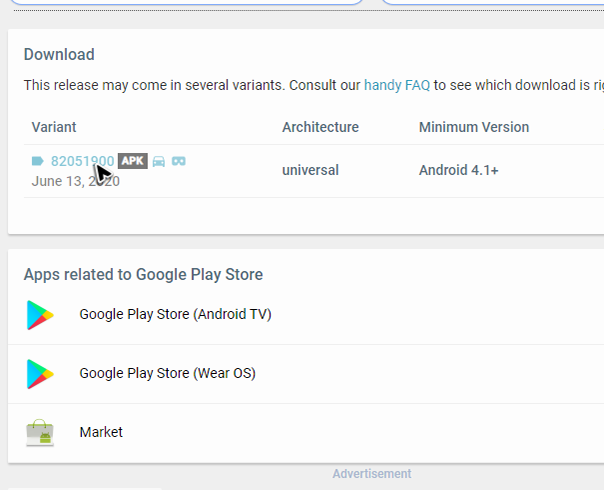 다만, 해당 사이트를 통해서 구글 플레이 스토어 설치 파일을 구할 땐 낚시성 버튼을 잘 피해야 합니다. 아래 그림에서 커서가 있는 버튼만 누르면서 apk를 받아주세요.