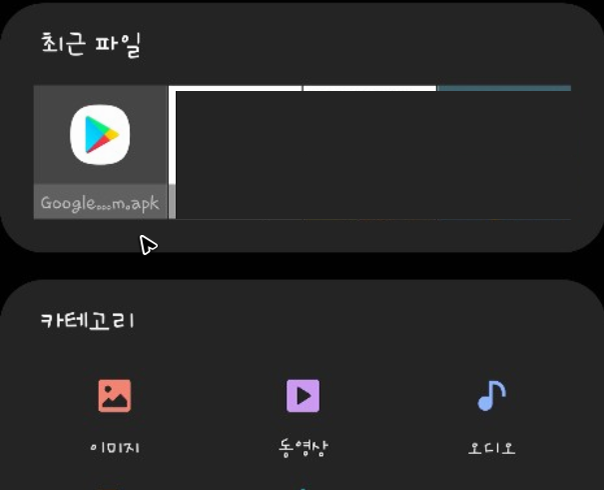 파일을 사용하고 있는 스마트기기로 옮겼다면, 이제 스마트기기의 화면을 밝혀주세요. 그리고 내 파일이라 적힌 앱을 찾아서 실행을 해주시면 됩니다. 그럼 상단 목록에서 최근 추가한 APK 파일이 나올 거예요. 물론 탭해서 실행을 해주시면 됩니다.
