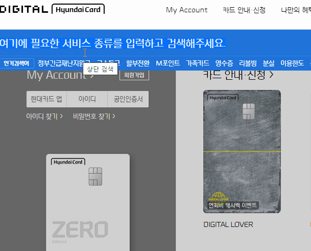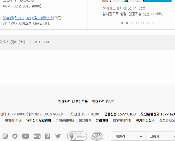 요즘에는 코끼리 때문에 버튼으로 현대카드 홈페이지 바로가기를 하시려는 분들이 더욱 많아진 것 같은 느낌이예요. 물론 사용 내역 조회나 포인트 사용, 결제취소 등을 위해서 찾아가는 경우도 많습니다.